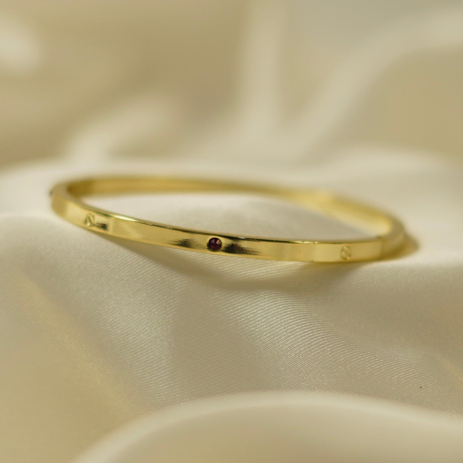 This Multicolor Gem Bangle adds a vibrant touch to elegance with its sleek, slim design and sparkling stones in every hue.